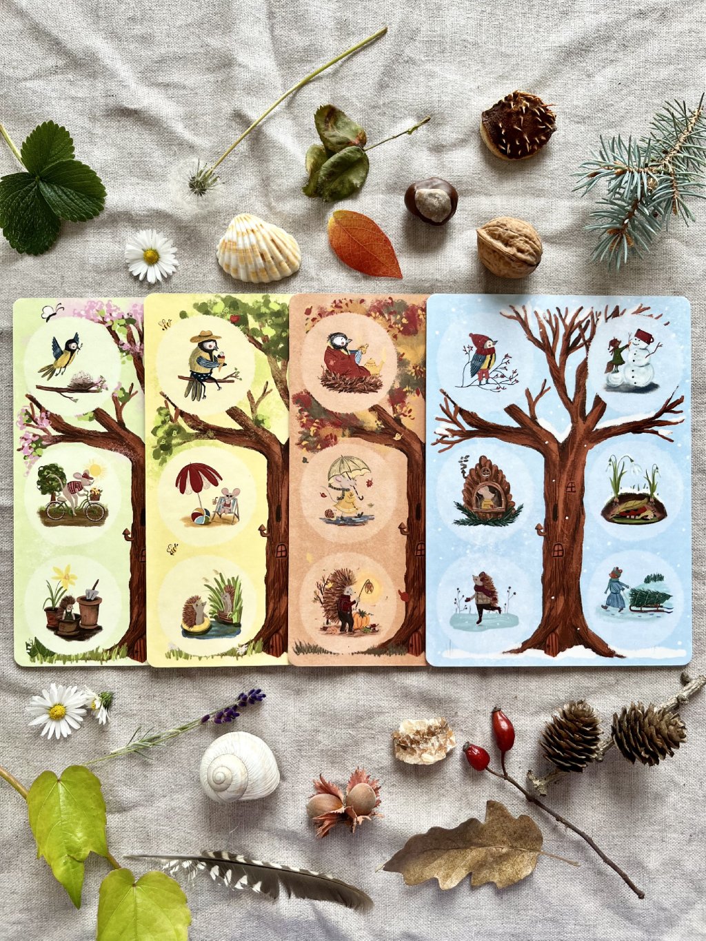 A gyerekek játék közben felfedezik az évszakokat és a körülöttük lévő világot. Az egyedi, részletgazdag illusztrációk nemcsak elvarázsolják őket, hanem lehetőséget teremtenek a szókincs bővítésére és a nyelvi fejlődés támogatására is.”