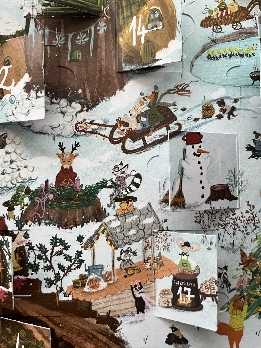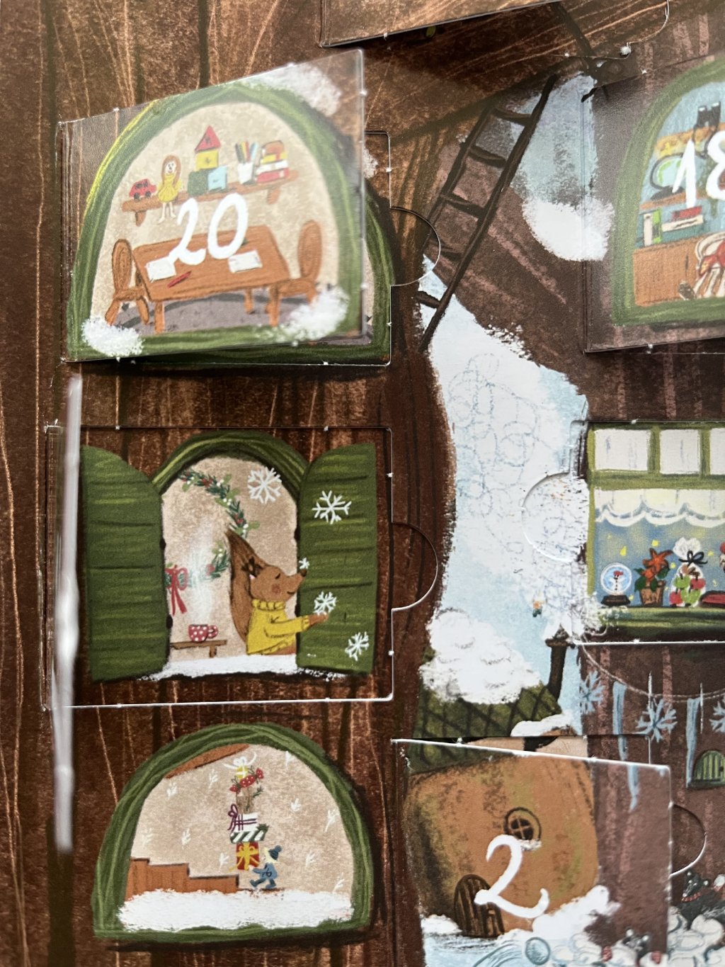 Minden ablak mögött egy új, mesés pillanatot: az ünnepre készülődő mókusokat, mézeskalácsot sütő egérkéket, huncut nyuszit…