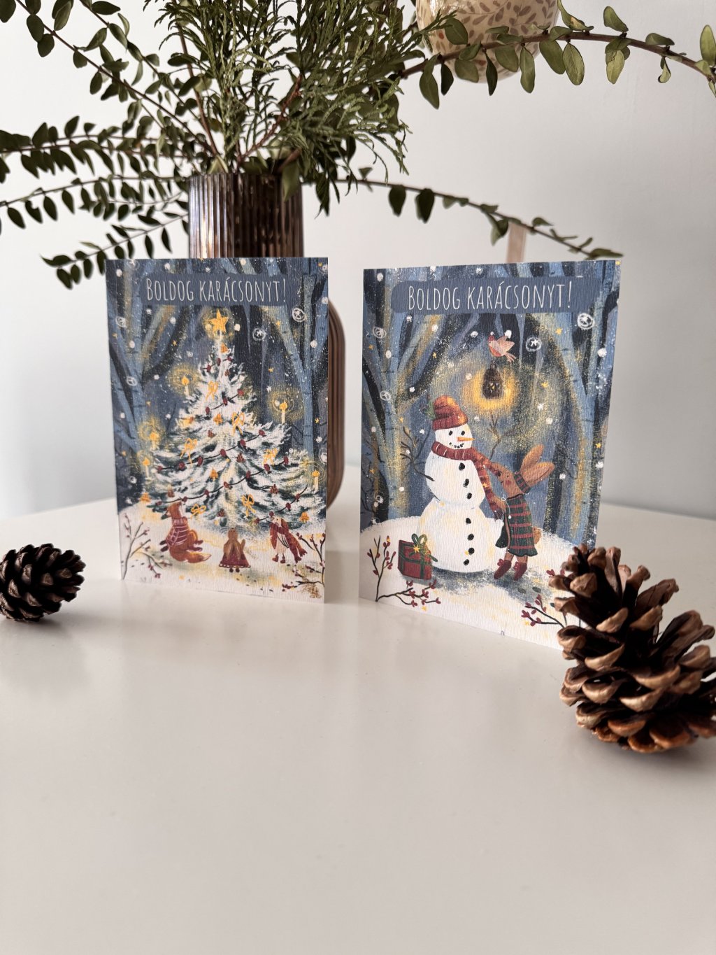 A meghitt, ünnepi hangulatú illusztrációk különlegessé teszik az ajándékozást, és finom dekorációként is megállják a helyüket otthonodban az Ünnepek alatt.